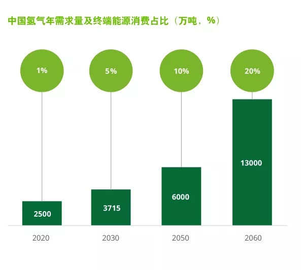 2021年4月21日,中國(guó)氫能聯(lián)盟發(fā)布《中國(guó)氫能源及燃料電池產(chǎn)業(yè)白皮書2020》,指出在2030年碳達(dá)峰情景下,我國(guó)氫氣的年需求量將達(dá)到3715萬(wàn)噸,在終端能源消費(fèi)中占比約為5%;在2060年碳中和情景下,我國(guó)氫氣的年需求量將增至1.3億噸左右,在終端能源消費(fèi)中占比約為20%。由此可見,“雙碳”目標(biāo)下及技術(shù)進(jìn)步將推動(dòng)中國(guó)氫能源行業(yè)發(fā)展穩(wěn)步前行。