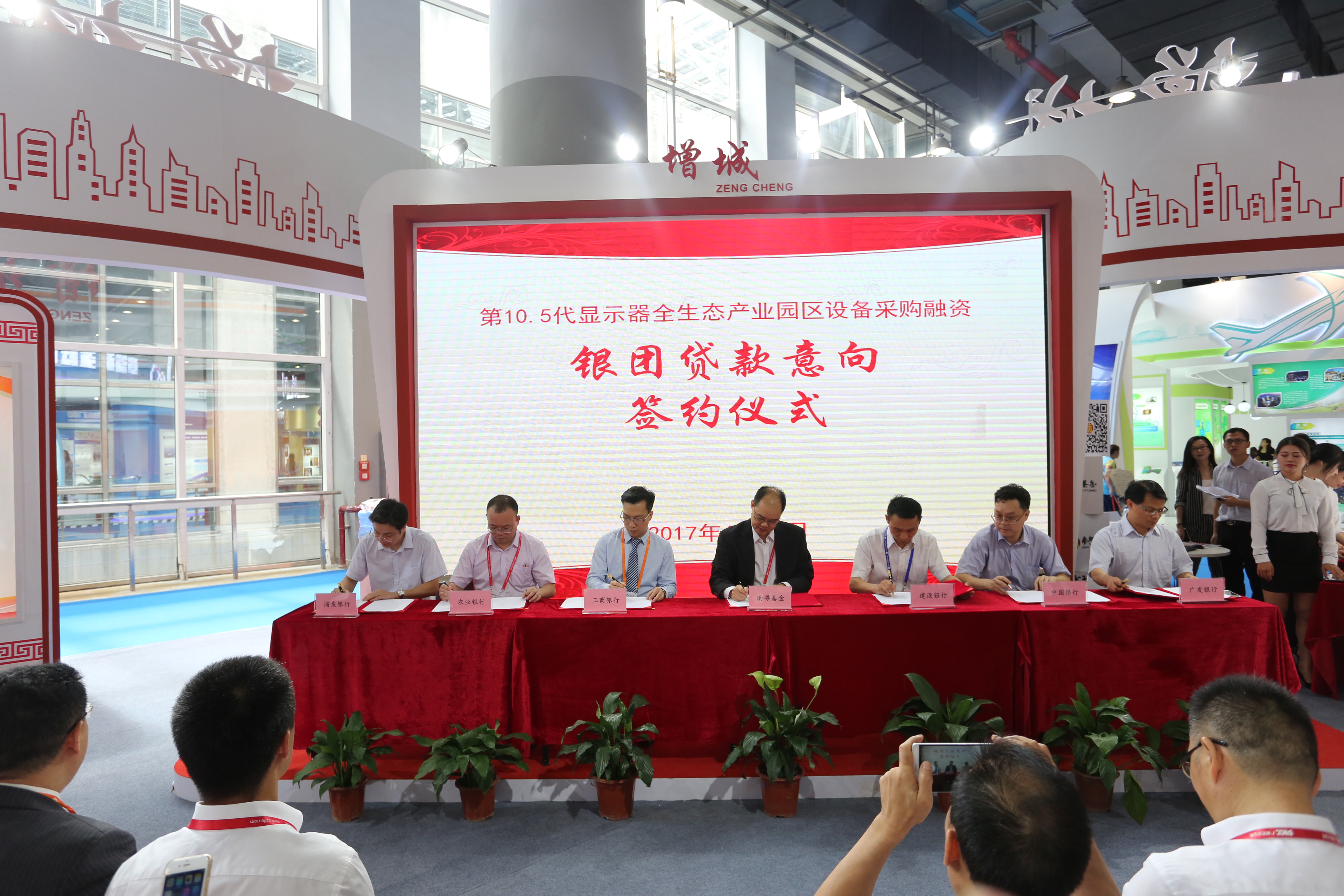 2017年6月23日,為期三天的第六屆中國(guó)(廣州)國(guó)際金融交易博覽會(huì)(以下簡(jiǎn)稱“金交會(huì)”)在廣州開(kāi)幕。當(dāng)天上午,金交會(huì)增城展館內(nèi)喜慶熱鬧,掌聲如潮。廣州市改革開(kāi)放以來(lái)最大單筆投資項(xiàng)目——增城第10.5代顯示器全生態(tài)產(chǎn)業(yè)園區(qū)銀團(tuán)貸款意向協(xié)議簽約儀式在此隆重舉行。