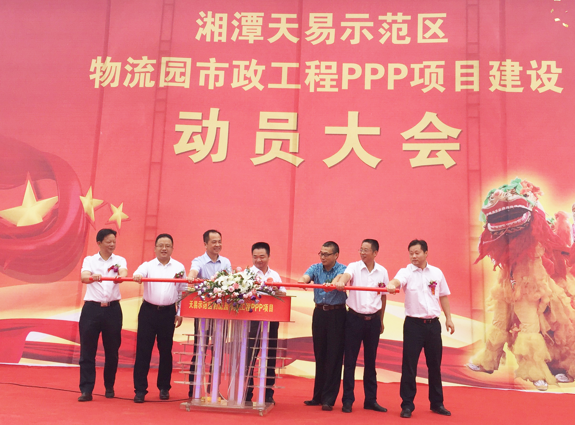 9月14日上午,湖南省市縣重點工程項目——湘潭市天易示范區(qū)物流園市政工程PPP項目正式開工。南粵基金集團董事長林濤,湘潭縣委書記傅國平、縣人大常委會主任唐劍恒、縣政協(xié)主席劉鐵強、中航建筑總經(jīng)理伍倜、常務副縣長周賢、天易示范區(qū)管委會常務副主任王成林出席儀式并共同推桿啟動。儀式上,南粵基金集團總裁曾金賢代表項目方致辭。