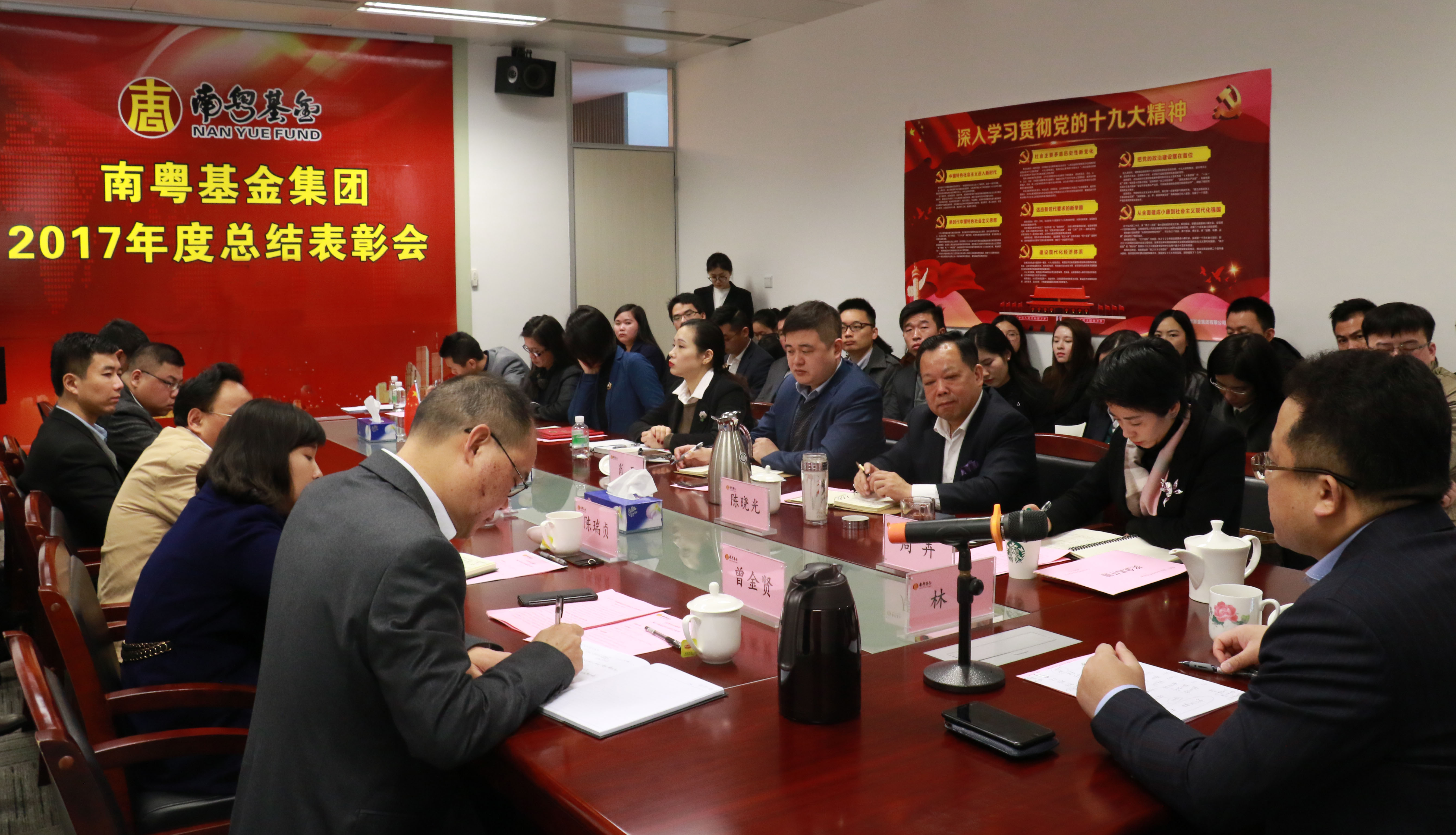 冬去春來,萬象更新。2018年2月6日,南粵基金集團召開2017年度總結(jié)表彰大會,會議全面總結(jié)了2017年各項工作的開展和完成情況,對工作中表現(xiàn)突出的先進個人進行了表彰,并對2018年工作作了安排部署。集團所有在家領(lǐng)導(dǎo)出席了本次大會,集團各部門及駐粵的各子公司全體員工參加了會議。集團董事長林濤在會上做了重要的總結(jié)講話,集團總裁曾金賢主持會議。
