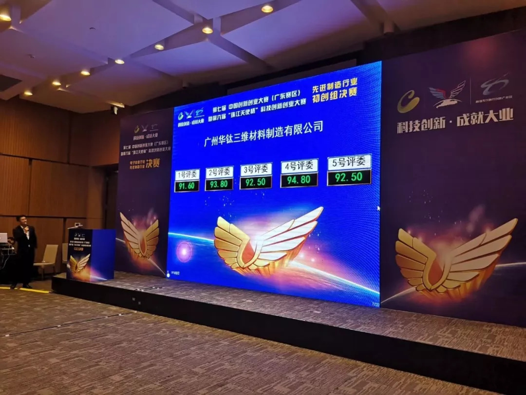 創(chuàng)新驅(qū)動(dòng)發(fā)展,“雙創(chuàng)”激發(fā)動(dòng)能。8月23-24日,由廣東省科技廳主辦的第七屆中國(guó)創(chuàng)新創(chuàng)業(yè)大賽(廣東賽區(qū))暨第六屆“珠江天使杯”科技創(chuàng)新創(chuàng)業(yè)大賽電子信息和先進(jìn)制造行業(yè)決賽在佛山市成功舉行。由廣州南粵基金集團(tuán)有限公司(簡(jiǎn)稱“南粵基金”)天使投資的廣州華鈦三維材料制造有限公司(簡(jiǎn) 稱“華鈦三維”),與3833家參賽企業(yè)同臺(tái)競(jìng)技中脫穎而出,成為全省唯一進(jìn)入決賽的3D打印企業(yè),并最終斬獲三等獎(jiǎng)。