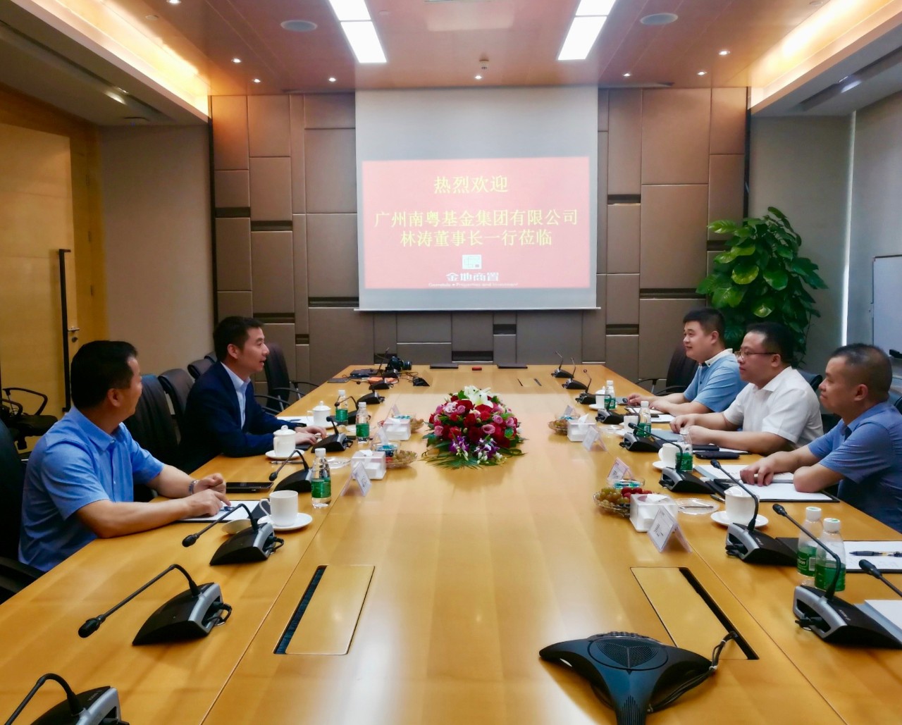 南粵基金副總裁肖磊,金地商置副總經(jīng)理謝文云等參加會談。