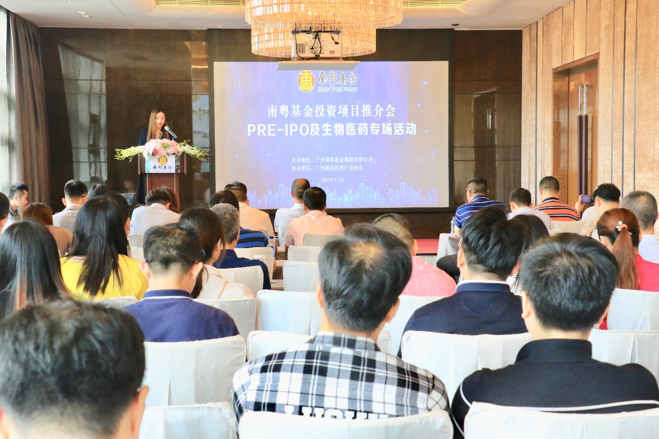 7月24日下午,南粵基金投資項目推介會——PRE-IPO及生物醫(yī)藥專場活動在廣州四季酒店隆重舉行。廣州股權(quán)投資行業(yè)協(xié)會秘書長劉秋華、廣州市生物產(chǎn)業(yè)聯(lián)盟秘書長李予強、俄羅斯亞洲工業(yè)企業(yè)家聯(lián)合會阿廖沙主席以及61 家股權(quán)投資機構(gòu)代表出席活動。南粵基金總裁曾金賢出席并致辭。