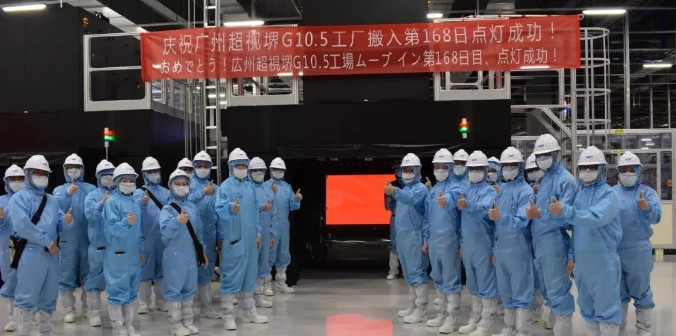 7月31日,超視堺第10.5代全生態(tài)產(chǎn)業(yè)園(簡稱“超視堺8K”)生產(chǎn)線首片65寸產(chǎn)品點燈儀式在偏貼工廠舉行。超視堺董事長羅政浩表示:“今年2月14日,園區(qū)首臺核心設備8K高精密曝光機,已進駐陣列工廠。經(jīng)過168天的日夜奮戰(zhàn),首片高分辨率65寸顯示屏在今天正式點亮,這意味著廣州平板顯示產(chǎn)業(yè)將進入新的發(fā)展階段”。