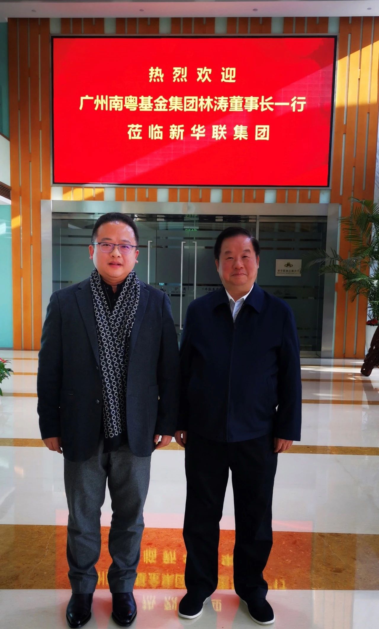12月21日,廣州南粵基金集團有限公司(簡稱“南粵基金”)董事長林濤與全國工商聯(lián)副主席、新華聯(lián)控股有限公司(簡稱“新華聯(lián)集團”)董事局主席兼總裁傅軍在北京舉行會談。新華聯(lián)集團高級副總裁兼首席會計師張必書、高級副總裁兼南方控股總裁劉正平等參加。