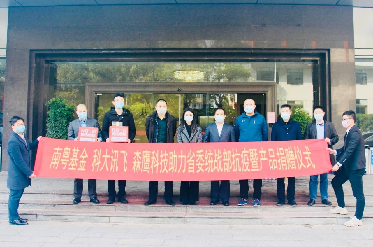 湖南省委統(tǒng)戰(zhàn)部二級(jí)巡視員宋崢嶸、辦公室主任曾志君,南粵基金副總裁陳曉光、科大訊飛湖南區(qū)總經(jīng)理俞仁忠、森鷹科技董事長唐少林等出席捐贈(zèng)儀式。宋崢嶸巡視員代表受贈(zèng)單位對(duì)三家愛心企業(yè)表示感謝,她表示省委統(tǒng)戰(zhàn)部將借助科技力量全力支持企業(yè)復(fù)工復(fù)產(chǎn),并希望攜手三家企業(yè)充分發(fā)揮各自平臺(tái)和技術(shù)優(yōu)勢(shì)助力農(nóng)業(yè)和教育等行業(yè)領(lǐng)域?qū)崿F(xiàn)防疫不誤農(nóng)時(shí)、停課不停學(xué)。