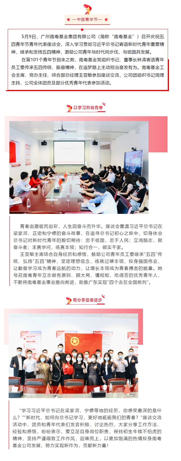 傳承五四薪火 砥礪奮斗青春 ——南粵基金召開慶祝五四青年節(jié)青年代表座談會