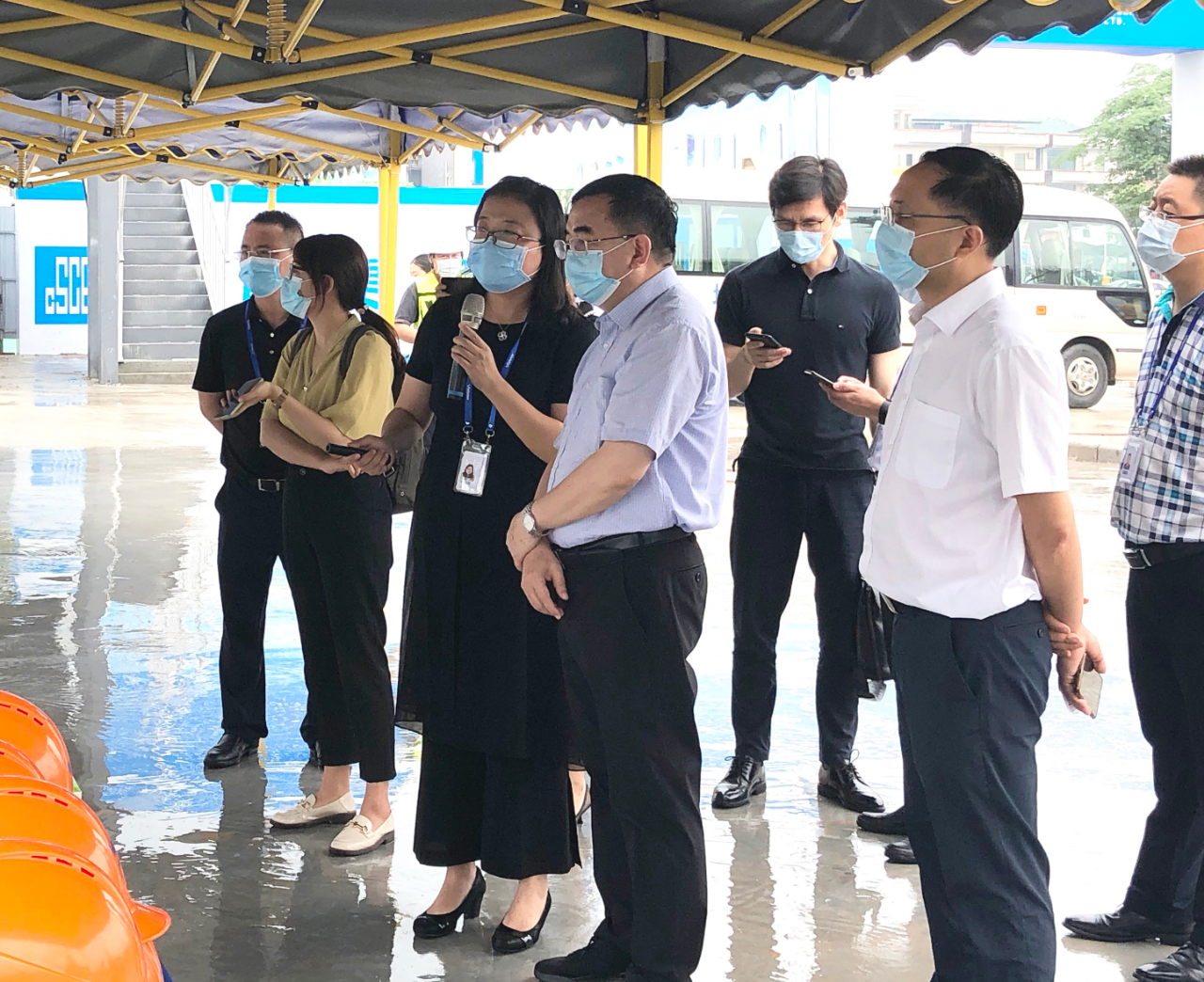 徐金鵬社長(zhǎng)一行實(shí)地走訪項(xiàng)目建設(shè)工地,聽(tīng)取關(guān)于項(xiàng)目建設(shè)進(jìn)展、抗擊疫情和復(fù)工復(fù)產(chǎn)情況介紹,并重點(diǎn)了解廣州國(guó)顯項(xiàng)目成立背景、產(chǎn)業(yè)布局意義、產(chǎn)能規(guī)劃和市場(chǎng)前景。