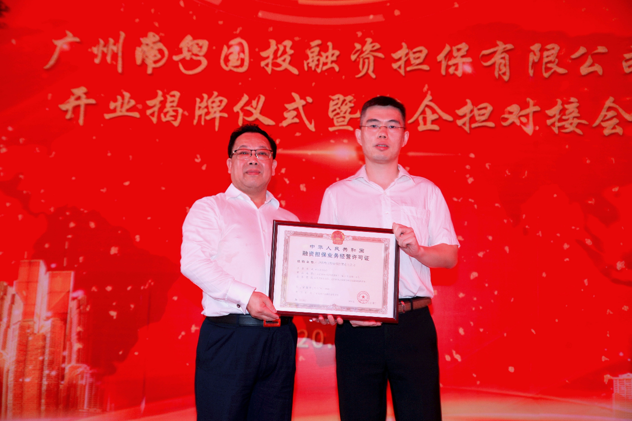 南粵基金副總裁、南粵國投董事長陳曉光頒發(fā)融資擔(dān)保業(yè)務(wù)經(jīng)營許可證