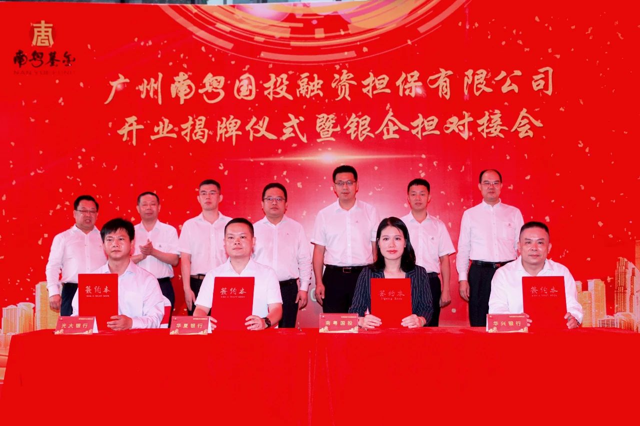 開業(yè)儀式上,南粵國投分別與中國農(nóng)業(yè)銀行、中國建設(shè)銀行、中國光大銀行、浦發(fā)銀行、華夏銀行、興業(yè)銀行、廣東華興銀行等7家銀行簽訂合作協(xié)議,同時(shí),南粵國投與廣東中南建設(shè)有限公司、廣州市同宇塑料制品有限公司、廣州布布暢通科技股份有限公司、廣州南樵農(nóng)業(yè)有限公司等4家企業(yè)簽訂了貸款擔(dān)保合作協(xié)議。