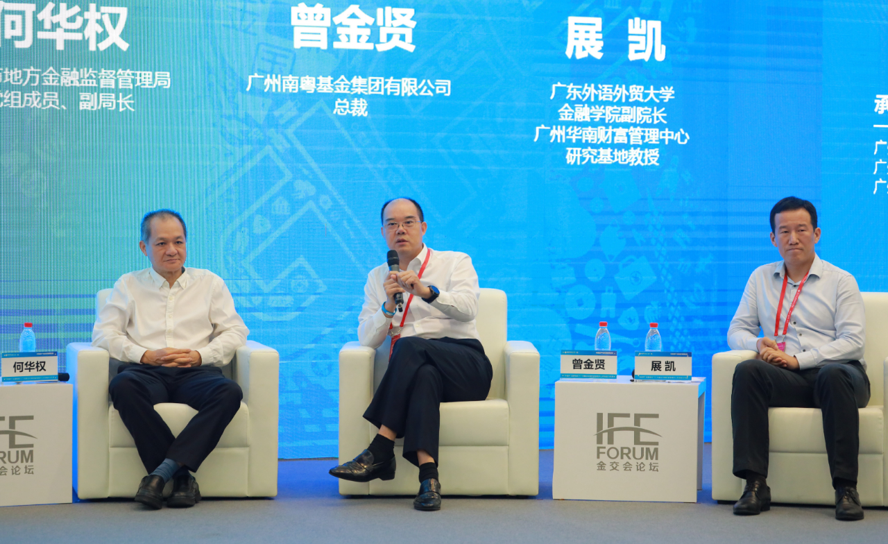 9月25日上午,由廣州市地方金融監(jiān)督管理局、廣州南沙經(jīng)濟技術(shù)開發(fā)區(qū)管理委員會指導(dǎo),中國(廣州)國際金融交易博覽會(簡稱“金交會”)組委會辦公室主辦的第九屆金交會華南資產(chǎn)與財富管理論壇在中國進出口商品交易會展館成功舉辦。廣州市地方金融監(jiān)督管理局副局長何華權(quán),南沙區(qū)副區(qū)長阮曉紅,廣州南粵基金集團有限公司(簡稱“南粵基金”)董事長林濤、總裁曾金賢等政企商學(xué)界代表出席活動。