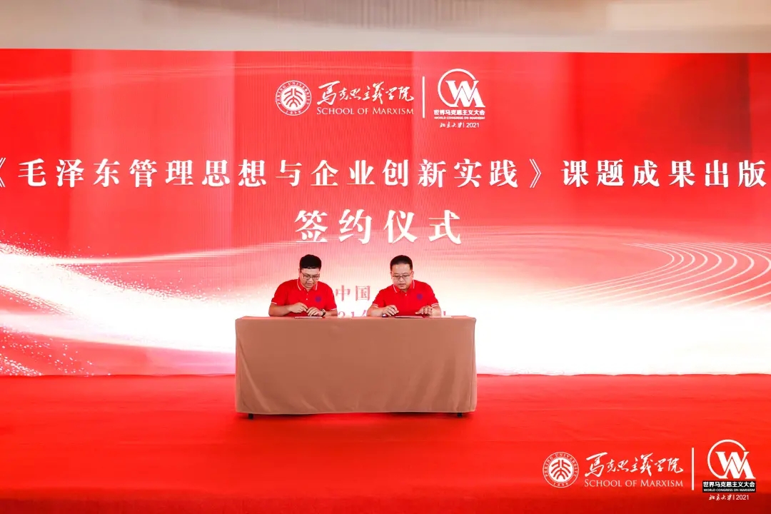 7月17-7月18日,第三屆世界馬克思主義大會(huì)在北京大學(xué)召開。期間,南粵基金與北京大學(xué)毛澤東管理思想高級(jí)研究班(簡稱“毛管班”)聯(lián)合課題成果——《毛澤東管理思想與企業(yè)創(chuàng)新實(shí)踐》出版簽約儀式正式舉行。毛管班建設(shè)委員會(huì)常務(wù)理事、毛管八班班長、南粵基金董事長林濤,與人民出版社責(zé)任編輯、讀書會(huì)辦公室負(fù)責(zé)人劉江波代表雙方簽約。