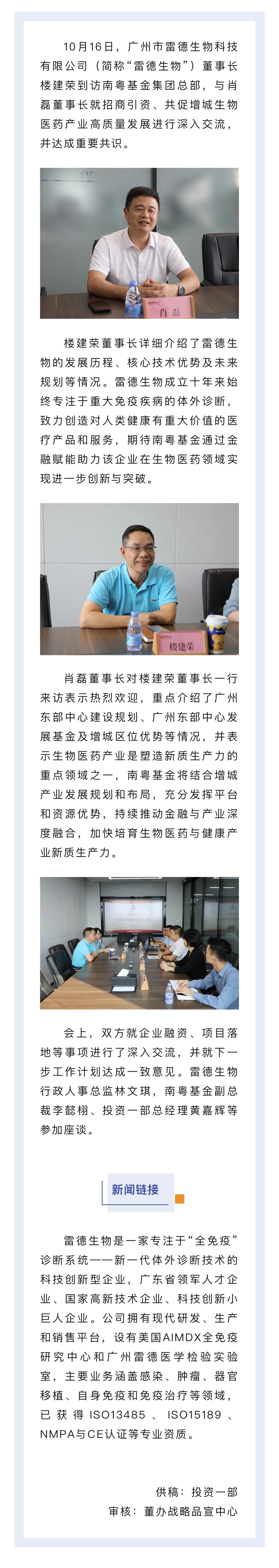 雷德生物董事長(zhǎng)樓建榮到訪南粵基金集團(tuán)