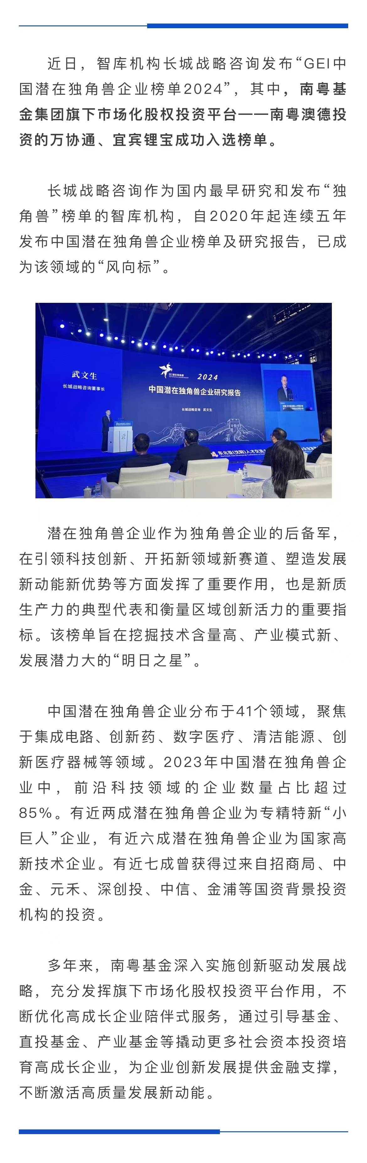 潛在獨角獸發(fā)榜!南粵基金投資企業(yè)兩家入選