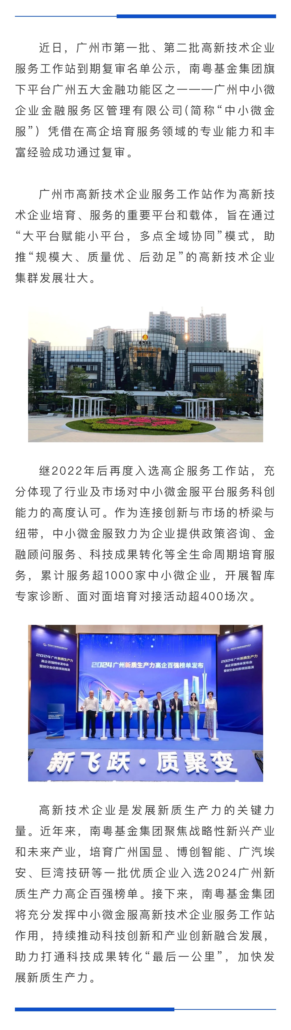 實(shí)力認(rèn)證!南粵基金集團(tuán)旗下平臺(tái)再度入選廣州市高企服務(wù)工作站