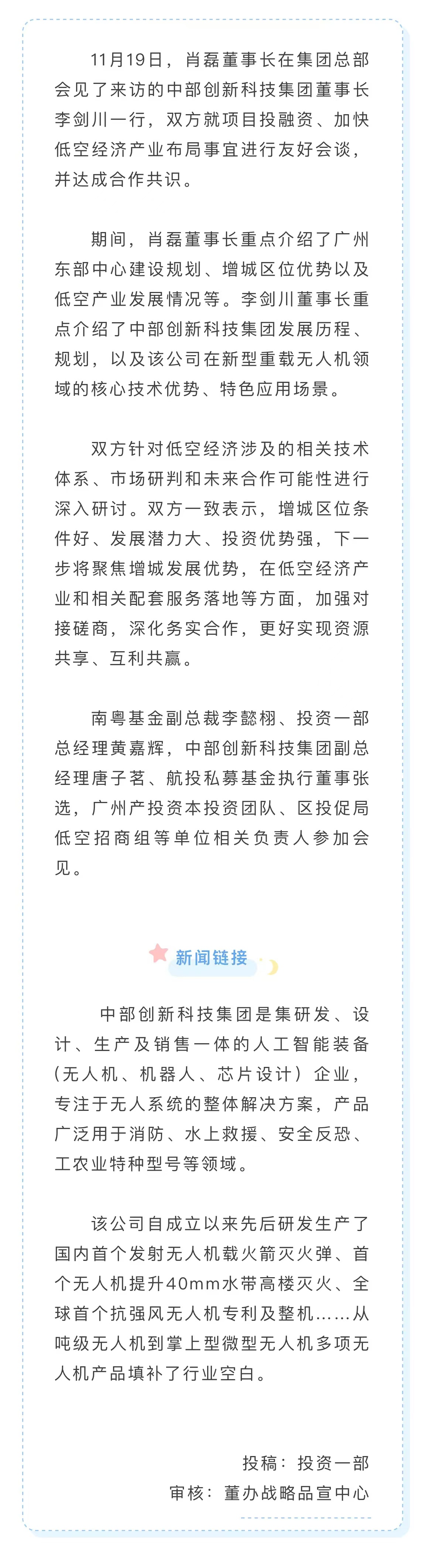 中部創(chuàng)新科技集團董事長李劍川到訪南粵基金