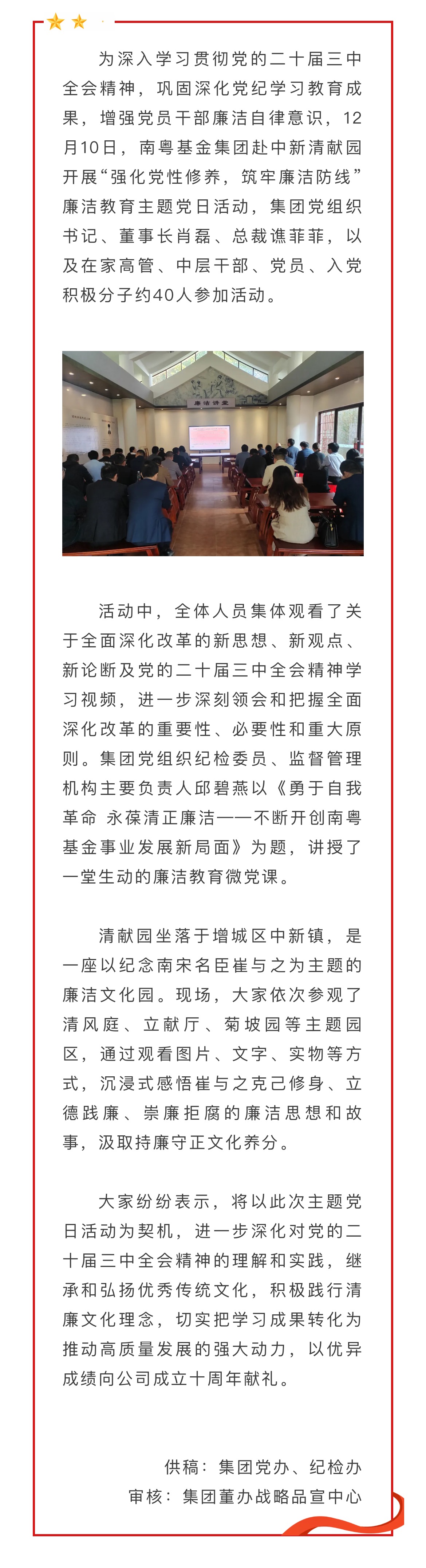 南粵基金集團赴清獻園開展廉潔教育主題黨日活動