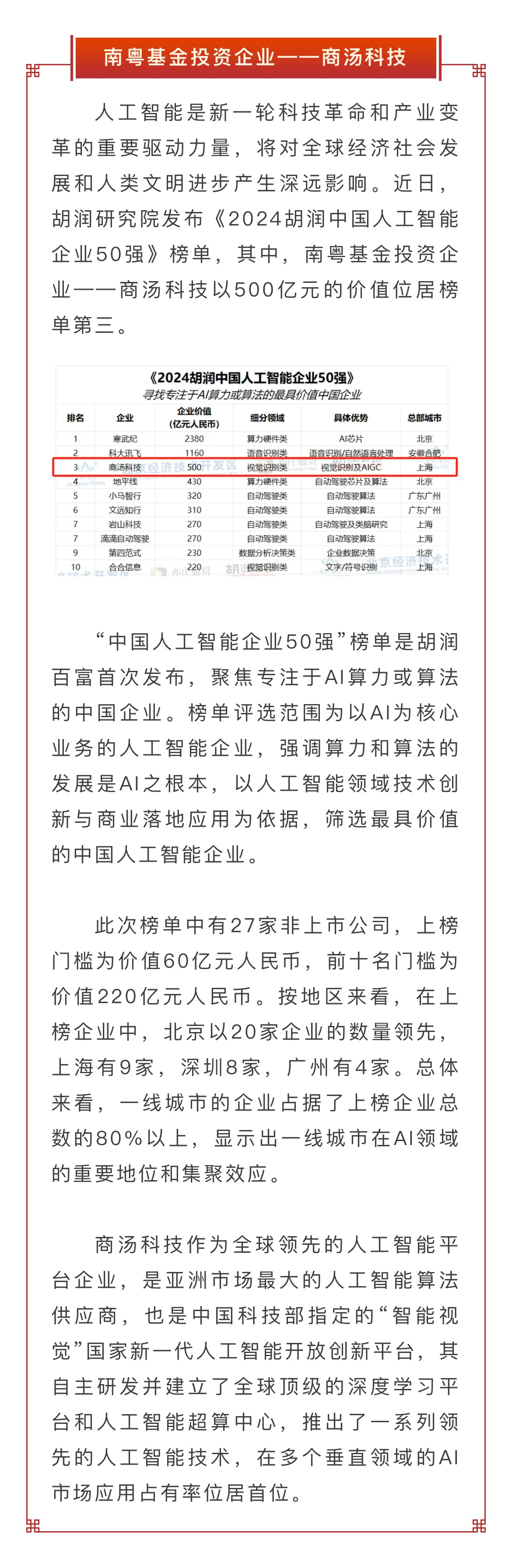 探花!南粵基金投資企業(yè)榮登“胡潤中國人工智能企業(yè)50強(qiáng)”