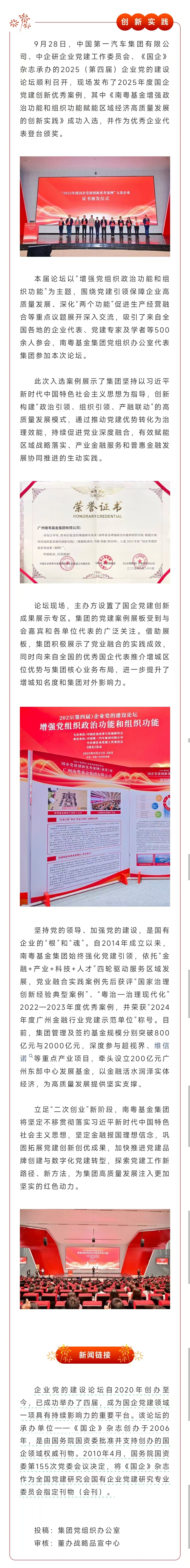 南粵基金集團亮相2025(第四屆)企業(yè)黨的建設(shè)論壇并獲表彰