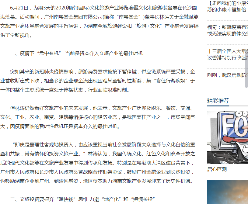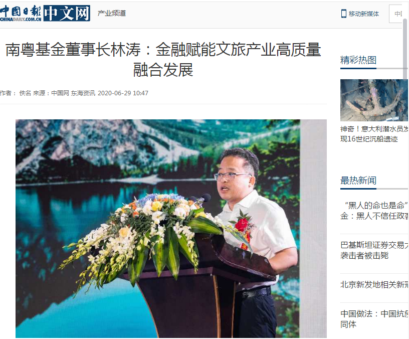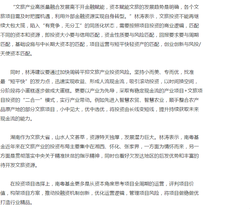 中國日?qǐng)?bào)|南粵基金董事長林濤:金融賦能文旅產(chǎn)業(yè)高質(zhì)量融合發(fā)展