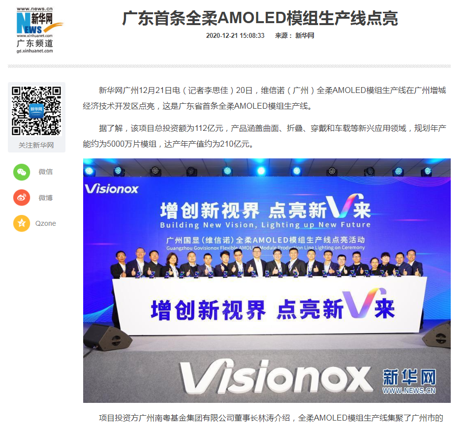 新華網(wǎng)|廣東首條全柔AMOLED模組生產(chǎn)線點(diǎn)亮