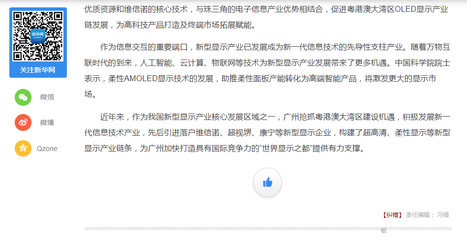 下一篇:21財(cái)經(jīng)|維信諾廣州全柔AMOLED模組廠一年內(nèi)建成點(diǎn)亮,粵顯示產(chǎn)業(yè)集聚效應(yīng)凸顯