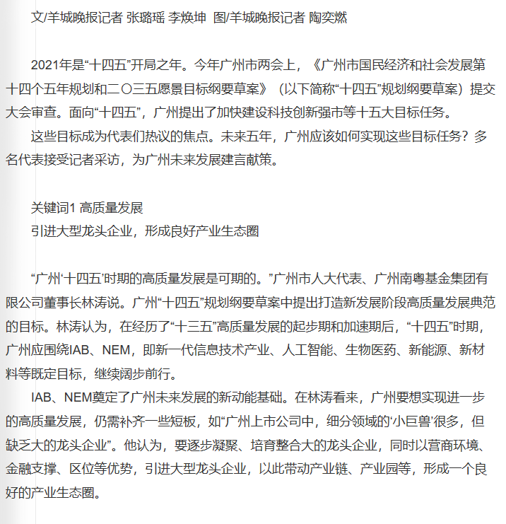 羊城晚報|代表熱議廣州“十四五”規(guī)劃綱要草案: 改革不停步,廣州才能永遠(yuǎn)年輕