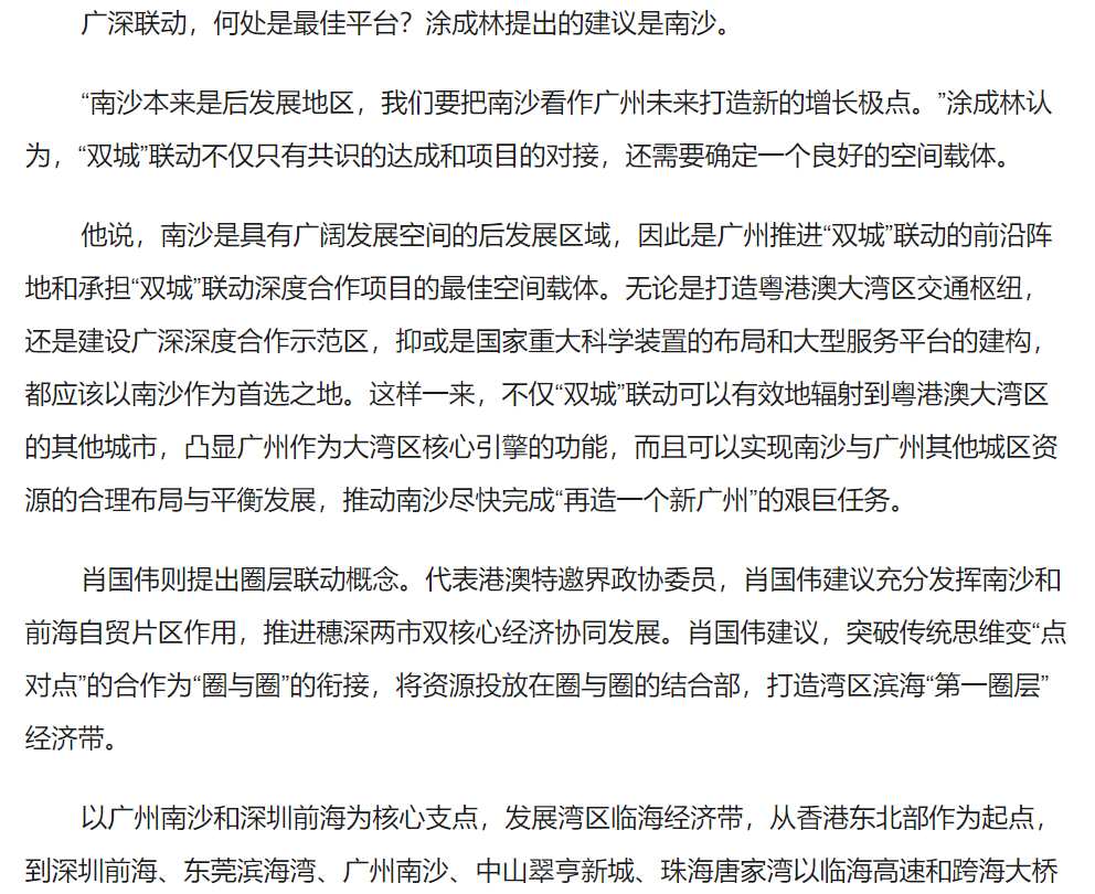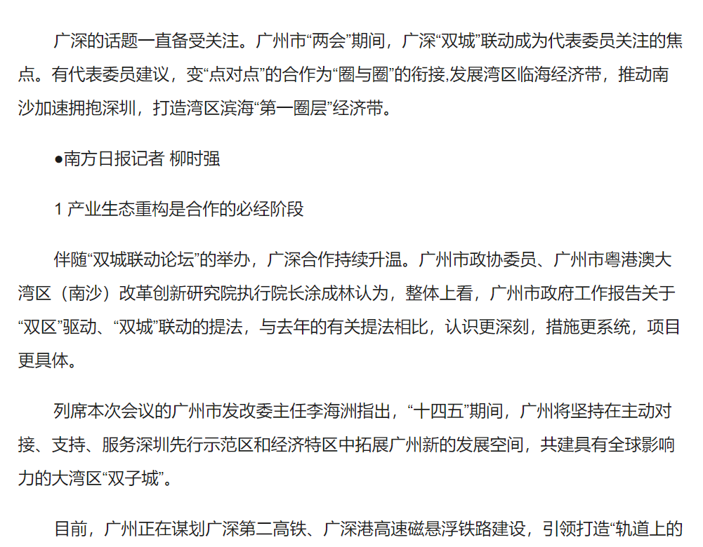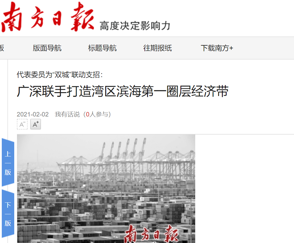 南方日?qǐng)?bào)|代表委員為“雙城”聯(lián)動(dòng)支招: 廣深聯(lián)手打造灣區(qū)濱海第一圈層經(jīng)濟(jì)帶
