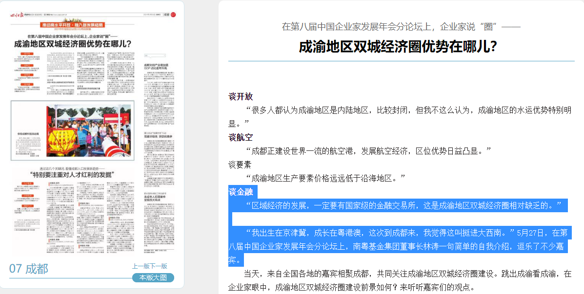 在第八屆中國(guó)企業(yè)家發(fā)展年會(huì)分論壇上,企業(yè)家說(shuō)“圈”——成渝地區(qū)雙城經(jīng)濟(jì)圈優(yōu)勢(shì)在哪兒?