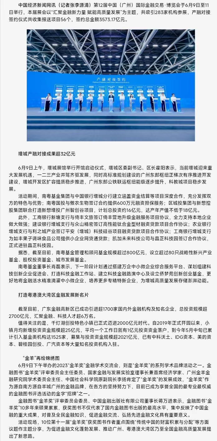 中國經(jīng)濟新聞網(wǎng) | 廣州金交會:展示創(chuàng)新成果 加強產(chǎn)融對接