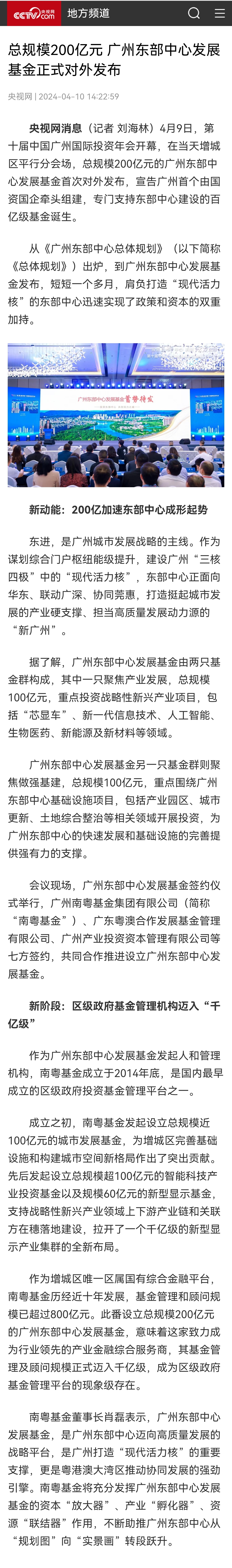 央視網(wǎng) | 總規(guī)模200億元 廣州東部中心發(fā)展基金正式對(duì)外發(fā)布